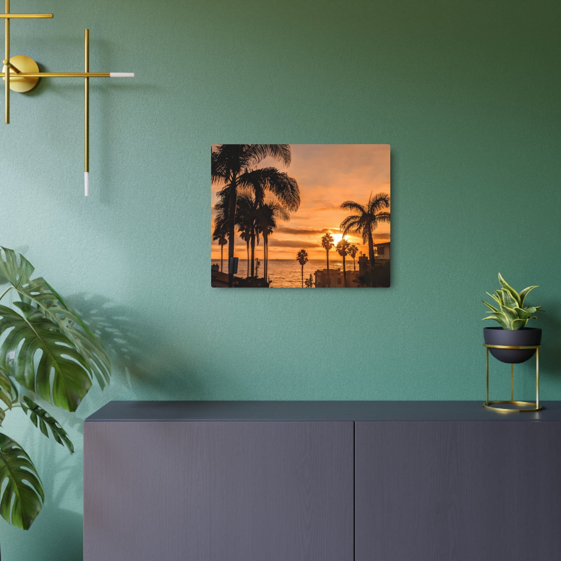 This is La Jolla at its finest with rows of palm silhouettes rising tall against a warm sunset wash. The fading light turns simple shapes into something timeless, a reminder of evenings when the city slows and the coast glows.