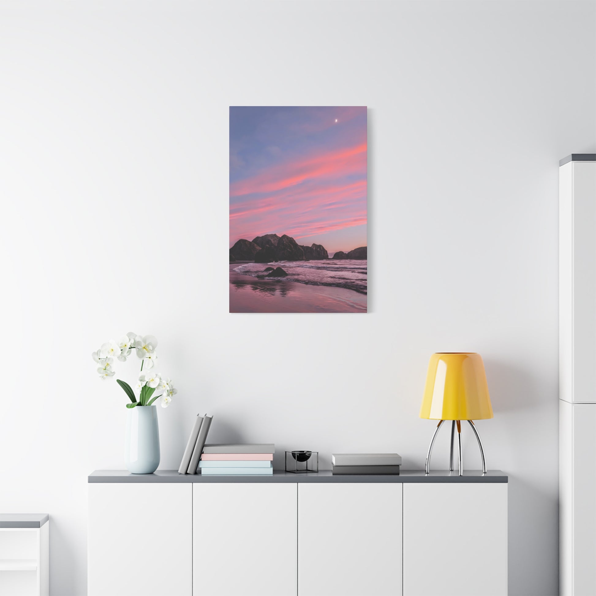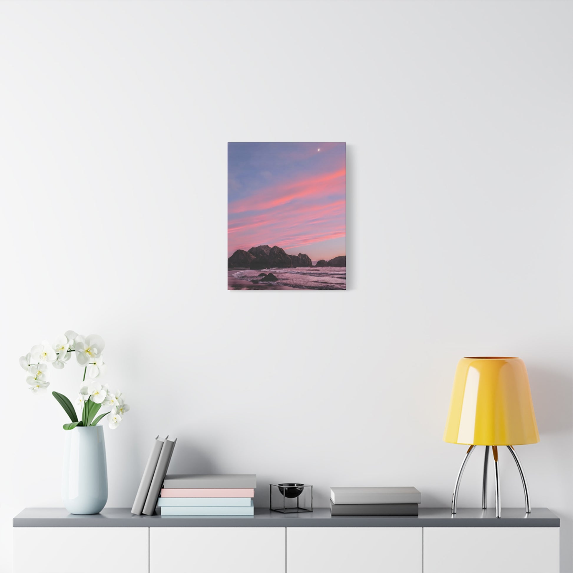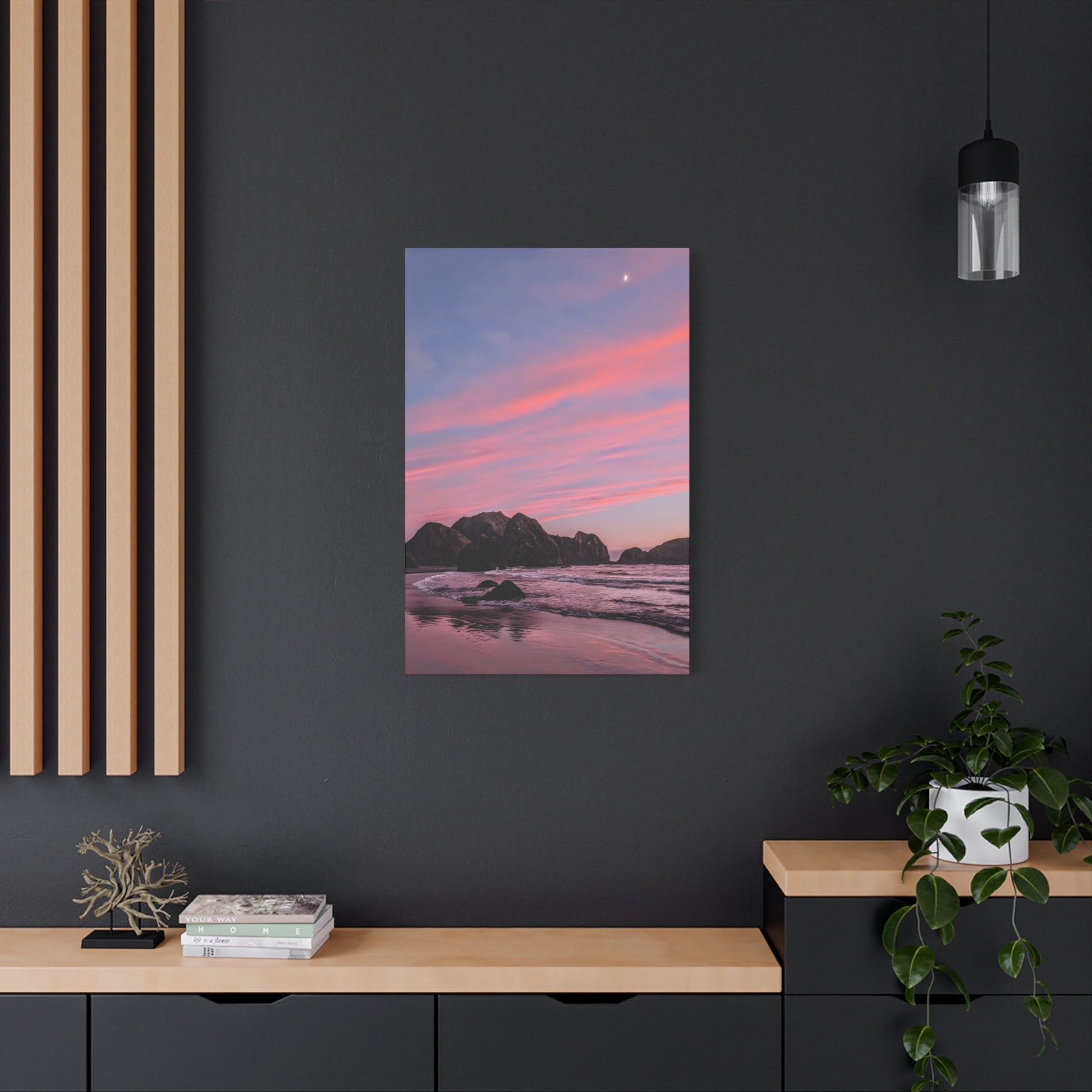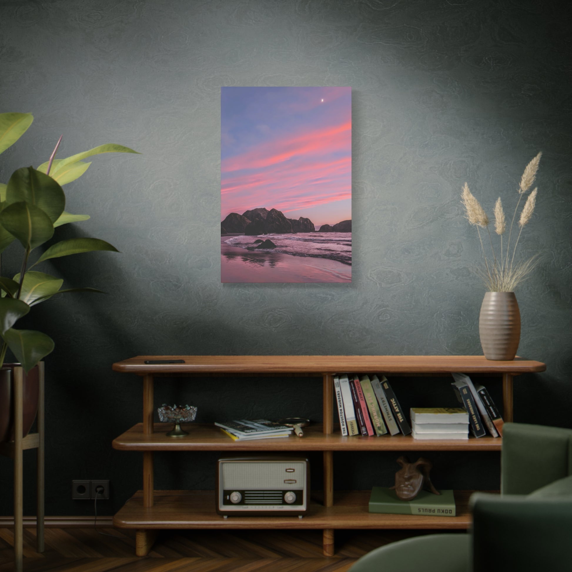 This epic Gold Beach sunset canvas captures the soft cranberry blush and muted rose tones as they melt into the sea. Shot on the shore at Meyers Creek Beach, this print is perfect for bathrooms, bedrooms, or as a gift. Brings the soft coastal vibe to your space and feel the calm.