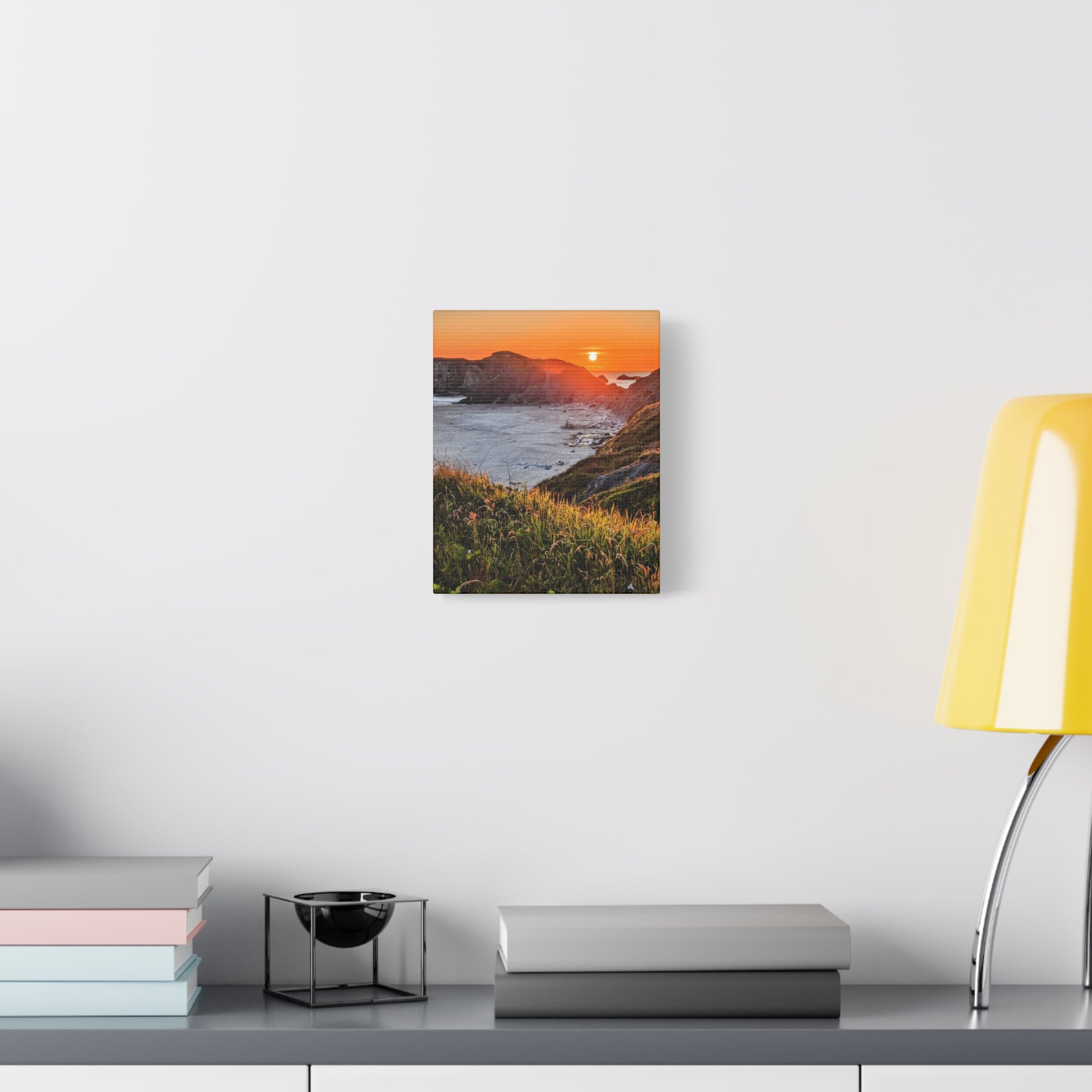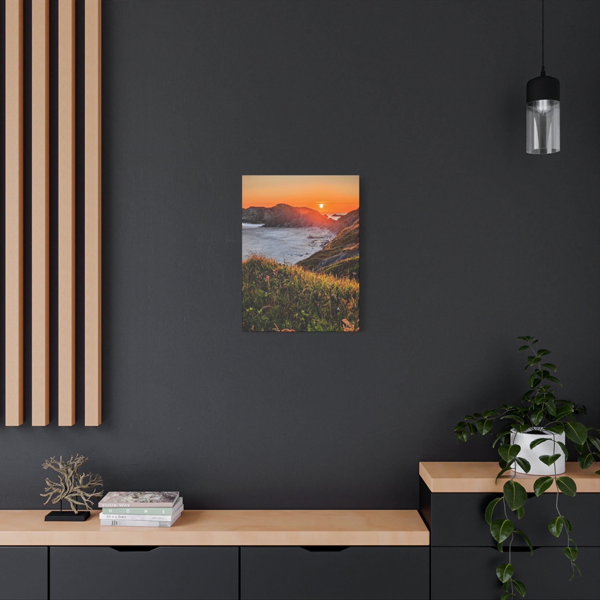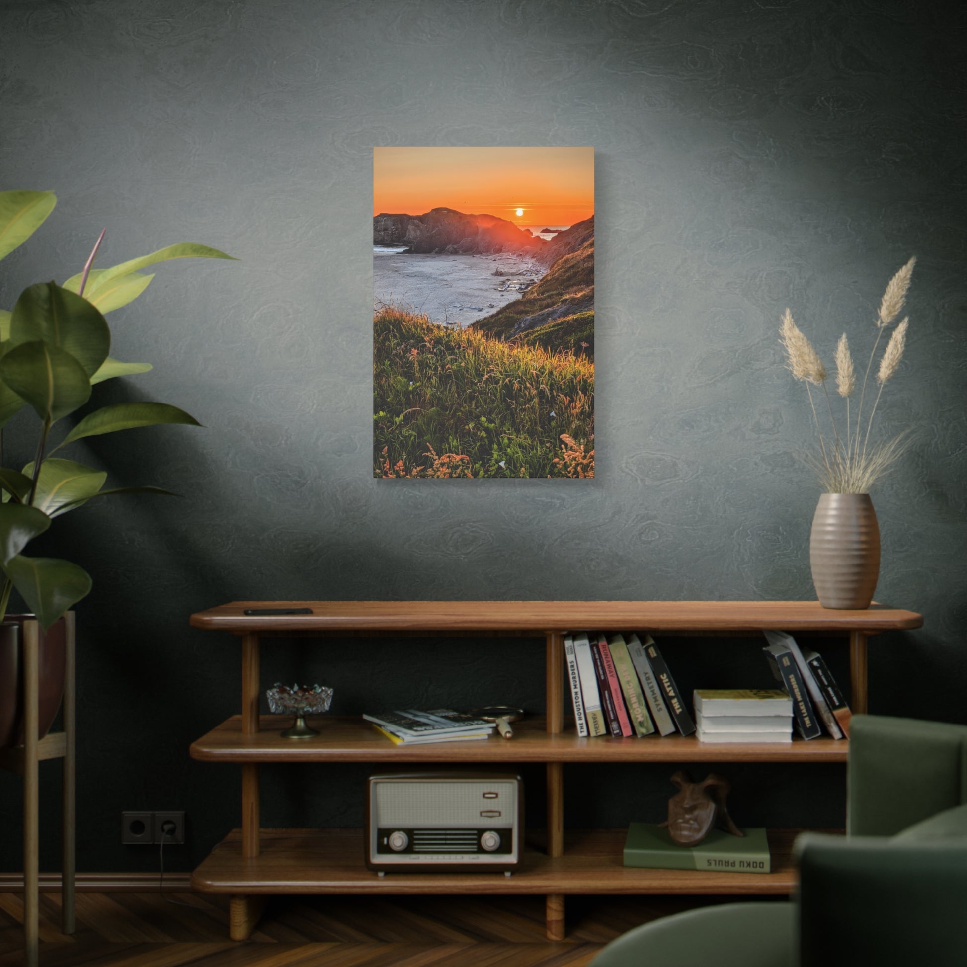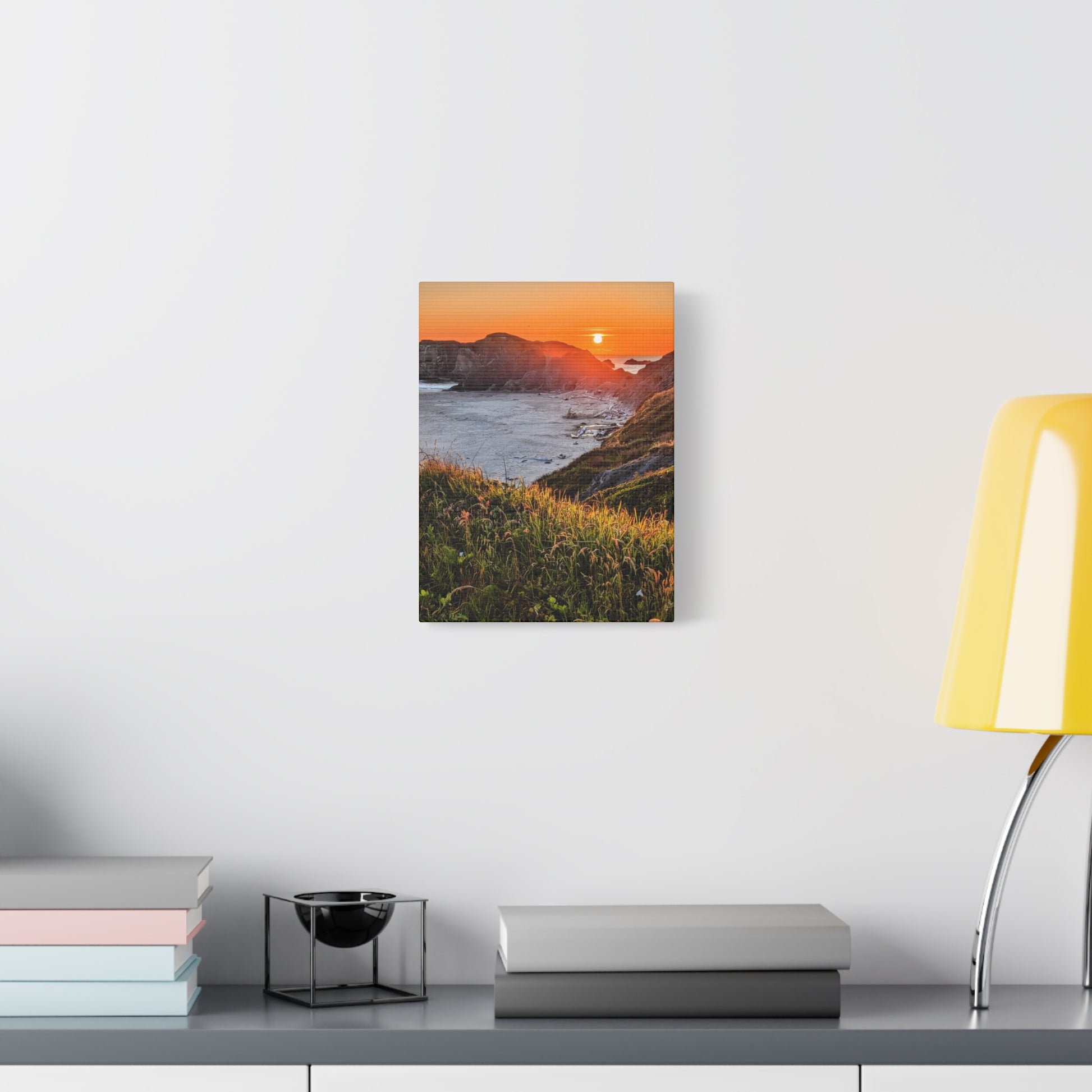 Transform your walls with a slice of the Oregon Coast, captured in that perfect golden hour glow. This matte canvas print brings the natural majesty of Coquille Point in Bandon where sunlit sea stacks meet rolling surf. Bring the peace into your space with intention.